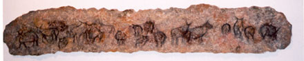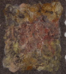 Some of the lighter greys dye beautifully creating deep and dramatic hues. The speckly character of Blue Texel wool has proved very suitable to help interpret the aged concept of cave paintings, based on line drawings of our own sheep. Controlled distortions within the felting process can transform fairly recognisable images of pedigree stock into ancient beasts of indiscernible species!