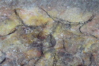 Some of the lighter greys dye beautifully creating deep and dramatic hues. The speckly character of Blue Texel wool has proved very suitable to help interpret the aged concept of cave paintings, based on line drawings of our own sheep. Controlled distortions within the felting process can transform fairly recognisable images of pedigree stock into ancient beasts of indiscernible species!