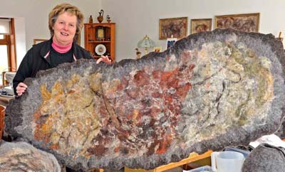 As a result of her demonstrations in the NSA tent at the Highland Show, Jennifer has had several commissions for felt wall hangings. She also carries out workshops during summer, teaching people how to make felt using new season's wool.